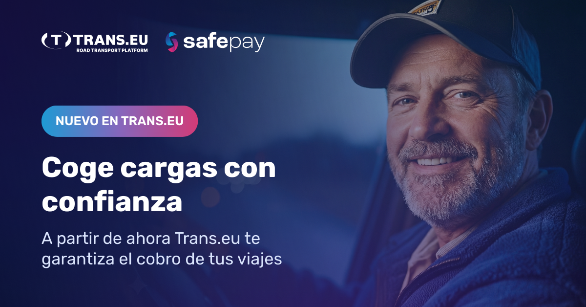 A través de SafePay, Trans.eu ofrece protección financiera, garantizando el cobro de los servicios de transporte que llevan el distintivo SafePay. Si un cliente no paga, el transportista puede presentar una reclamación online en la plataforma, aportando la documentación requerida. El modelo de pago-por-reclamo elimina las cuotas de registro, los pagos mensuales y cualquier coste inicial para el transportista.